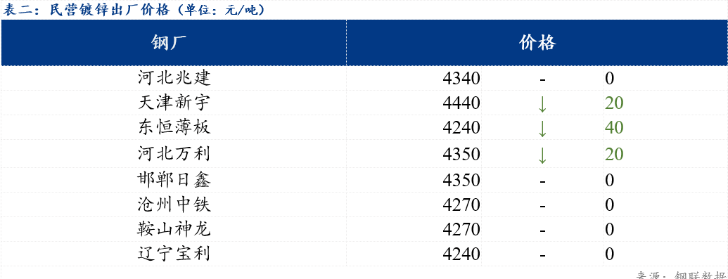 现北方地区民营镀锌板卷整体出厂价格在4240-4440元/吨。