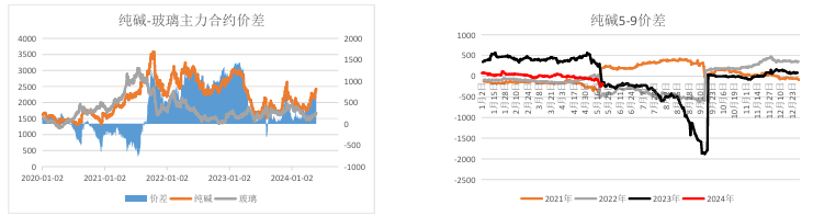 纯碱5-9价差震荡偏弱运行;玻璃5-9价差大幅走强;玻璃-纯碱套利价差走扩。