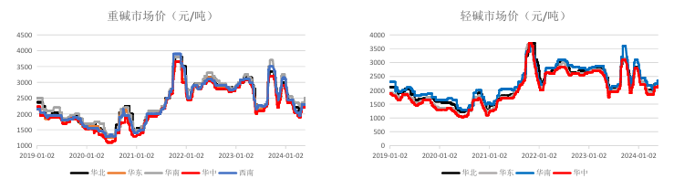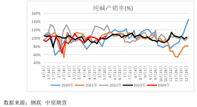 3.库存:企业库存85.27万吨,环比-3.26万吨,轻碱37.50万吨(+0.35万吨),重碱47.77万吨(3.61万吨)。