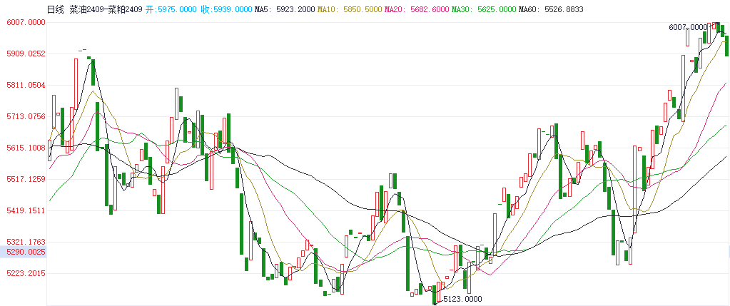 操作策略:多菜油空菜粕09,建议适当关注。若差价下破5800取消关注。