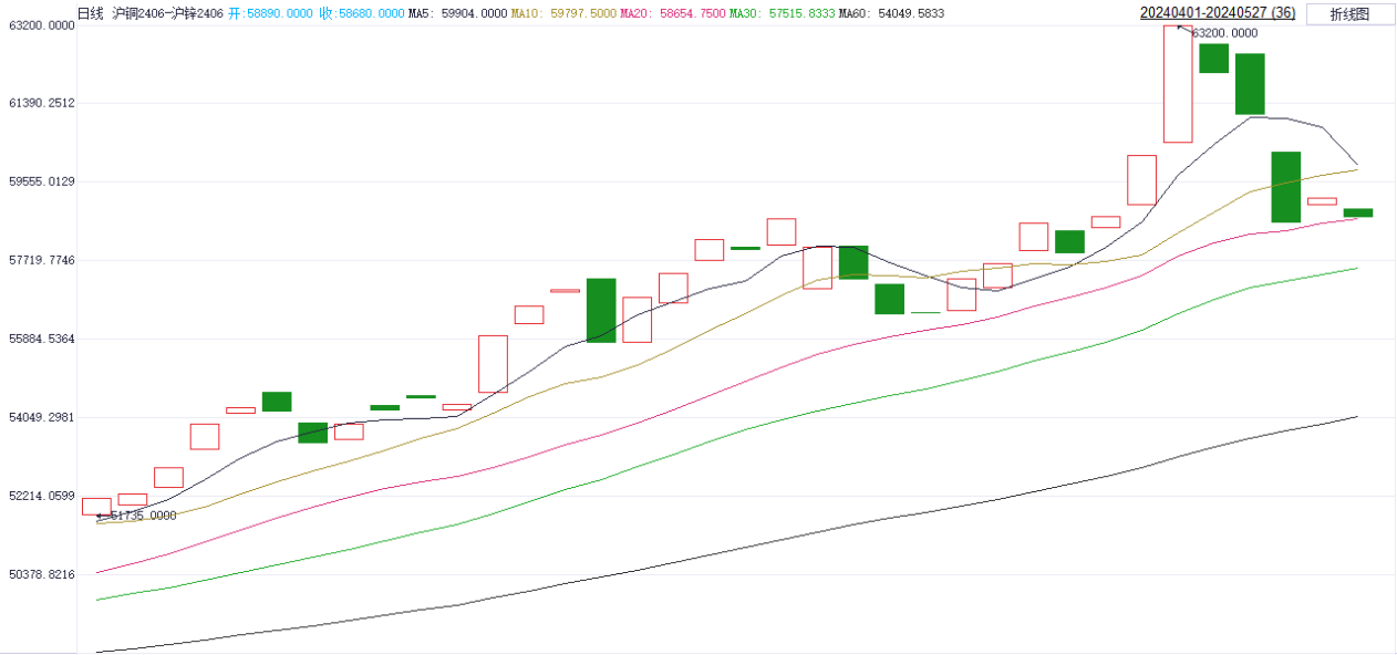 操作策略:多沪铜空沪锌06,为跨品种套利策略,可适当关注。若差价跌破55674离场。