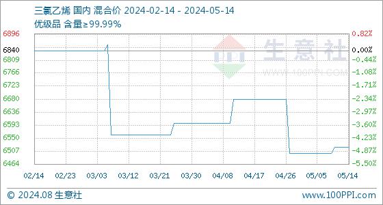 5月14日生意社三氯乙烯基准价为6520.00元/吨