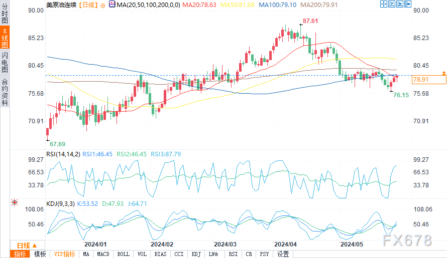 汇通财经APP讯——周二(5月28日)欧盘时段,原油价格温和走高,延续前两日的上涨势头。WTI原油盘中最高触及79.05美元每桶。