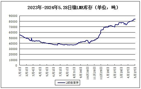据上图所示,5月,LME镍库存小幅上涨,截止月末,LME镍库存83730吨,较月初上涨6.63%,较年初上涨30.51%。