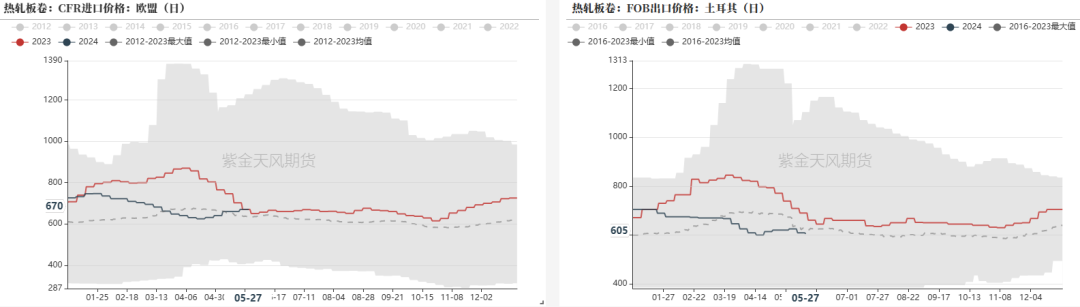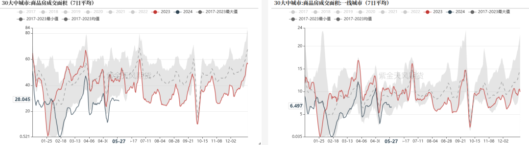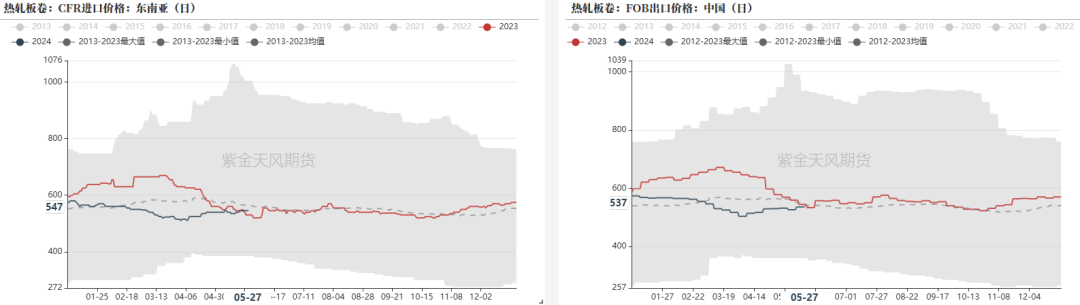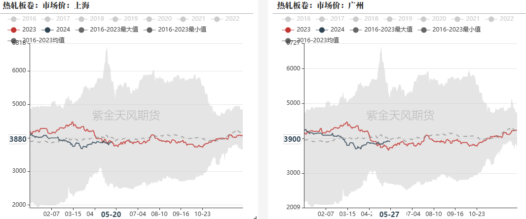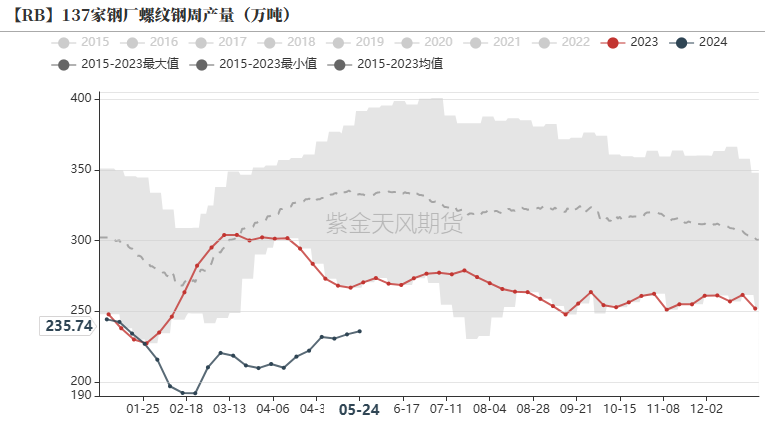 截至2024年5月24日,日均生铁产量为236.8万吨,环比下降0.09万吨(降幅0.04%);相比于去年同期下降2.0%。