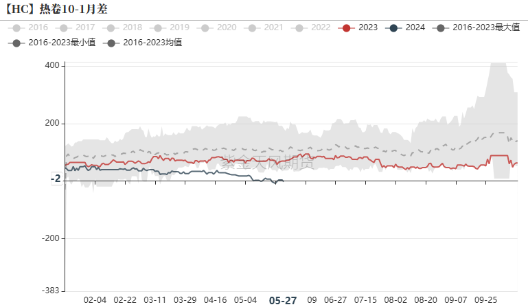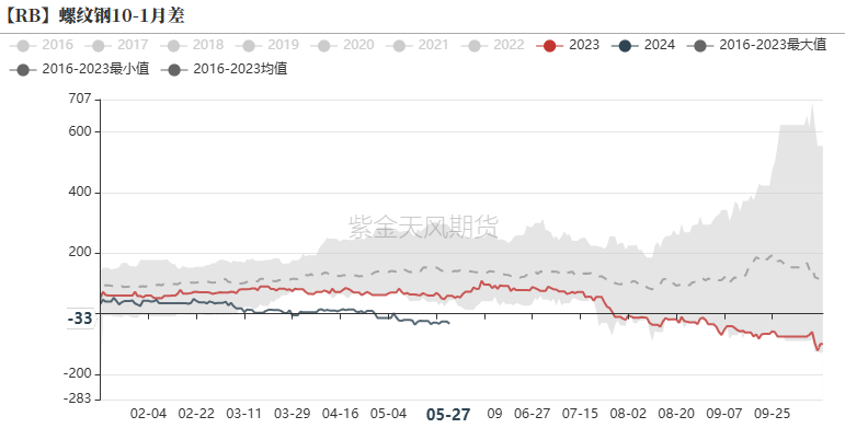 月差:偏空 成材整体受弱现实强预期影响,且近月受仓单压力影响,虽期货价格整体上涨,但基本面反应在月差上面呈现反套结构。