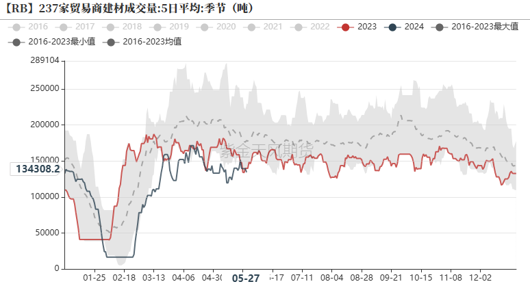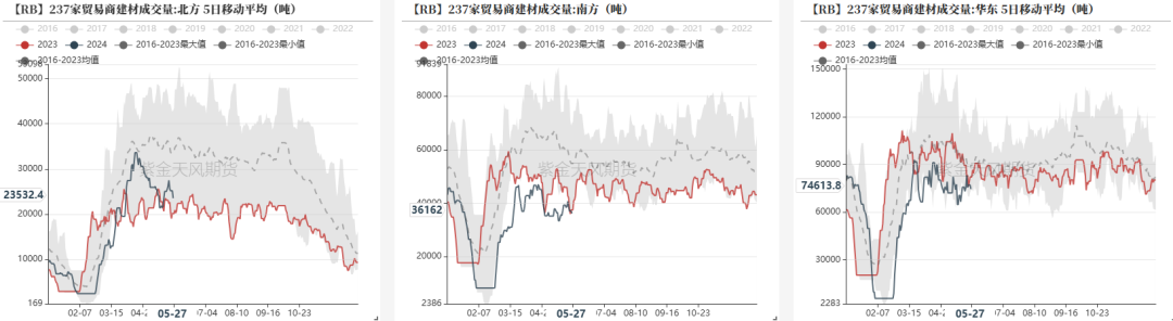 分地区来看,截至5月27日,华东地区建材成交量为7.46万吨;华北地区为2.35万吨;华南地区为3.62万吨。