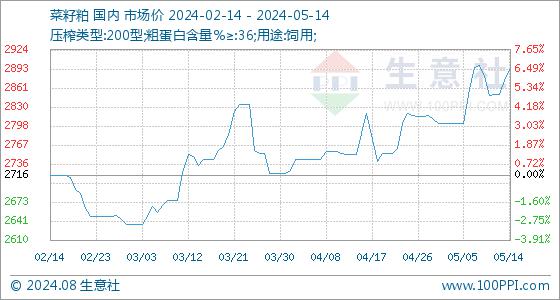5月14日生意社菜籽粕基准价为2873.33元/吨