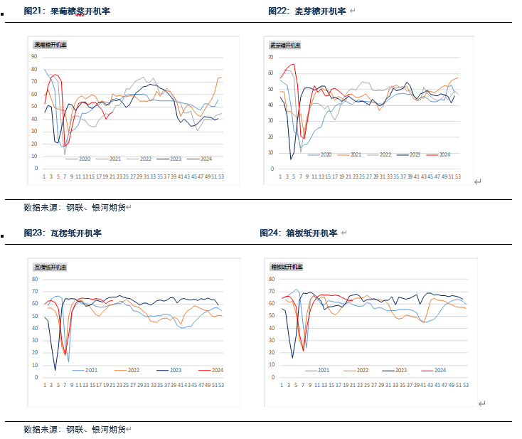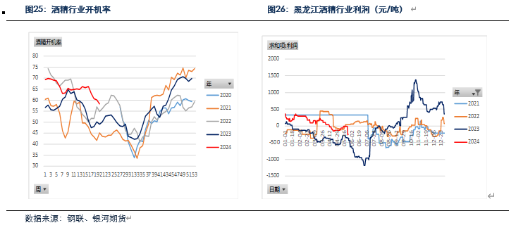 酒精行业,5月开机率也在下滑,酒精行业利润持续下滑。截止5月24日,黑龙江利润为-116元/吨,河南酒精利润为-148元/吨。