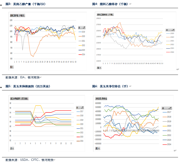 由于美玉米仍处于种植成本线以下,新季美玉米种植面积会下降。24/25年美玉米成本线480美分/蒲附近,美玉米目前远低于种植成本,预计2024年美玉米种植面积会下降,初步测算美玉米面积9000万英亩左右,低于去年的9460万英亩。