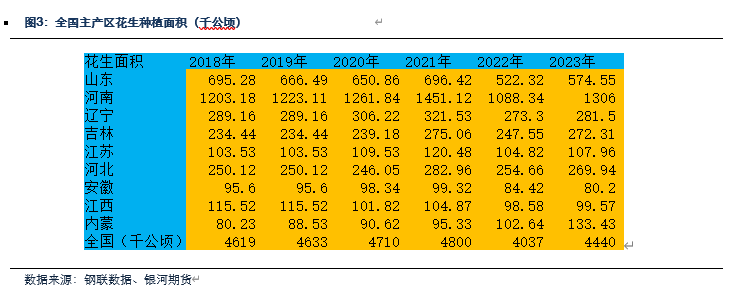 根据我们5月底对主产区河南等地的实地调研,2024年全国花生面积预计增10-20%。其中河南增20%左右,吉林增30%左右,辽宁增10-20%,其他花生产区也有不同程度的增加。