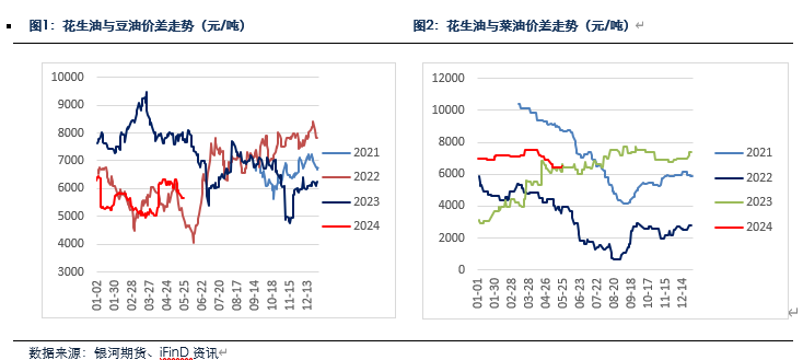 我国是世界上最大的花生生产国,全国花生总产量世界第一。2023年全球花生产量5046万吨,中国产量1830万吨(统计局口径,钢联数据为1654万吨),占比36%,2023年中国花生进口62万吨。在国内主要油料作物中,花生种植面积居第三,仅次于大豆和菜籽。花生一半用于食用,一半用于榨油。在国内油脂消费中,第一是豆油1780万吨,第二是菜油900万吨,第三是棕榈605万吨,第四是花生油326万吨。但花生油价格远过于前三大油脂价格,花生油有自己的定价模式。而花生作为油料和食品类,其走势不完全跟随油脂和下游的食品终端。