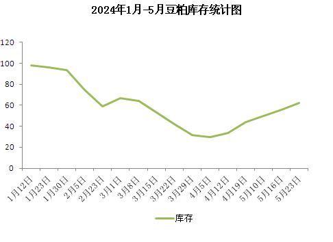 库存:根据生意社豆粕库存统计图可以看出,2024年1-4月豆粕库存量不断下滑,4月5日当周豆粕库存处于年内最低点,仅有30万吨。4月中旬开始,豆粕库存量呈现反弹之势,不断增加。4月19日当周,豆粕库存已经超44万吨。5月开始,豆粕不断累库,库存量不断走高。截止5月23日当周,豆粕已经高达60万吨一线,处于年内最高水平。随着库存量的不断增加,豆粕行情上涨承压。