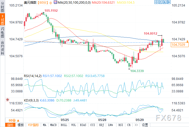 汇通财经APP讯——周三(5月29日)欧盘时段,受强劲的美国数据和美联储鹰派言论的推动,美元指数上涨0.07%,至104.6992。