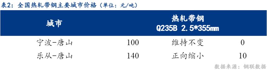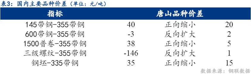 355mm带钢与钢坯市场价格价差正向缩小15元/吨,螺带差反向扩大1元/吨。