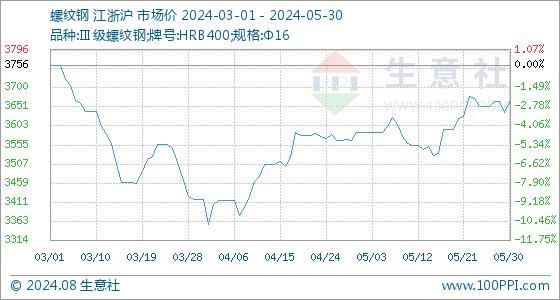 5月30日生意社螺纹钢基准价为3638.44元/吨