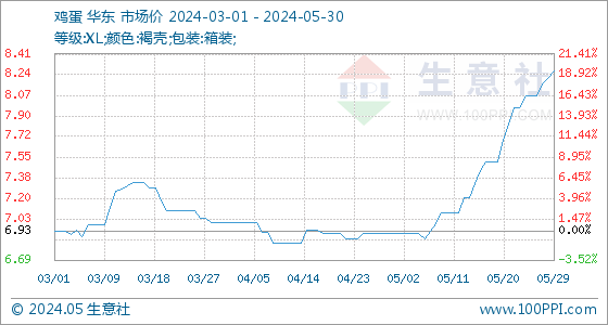 5月30日生意社鸡蛋基准价为8.27元/公斤