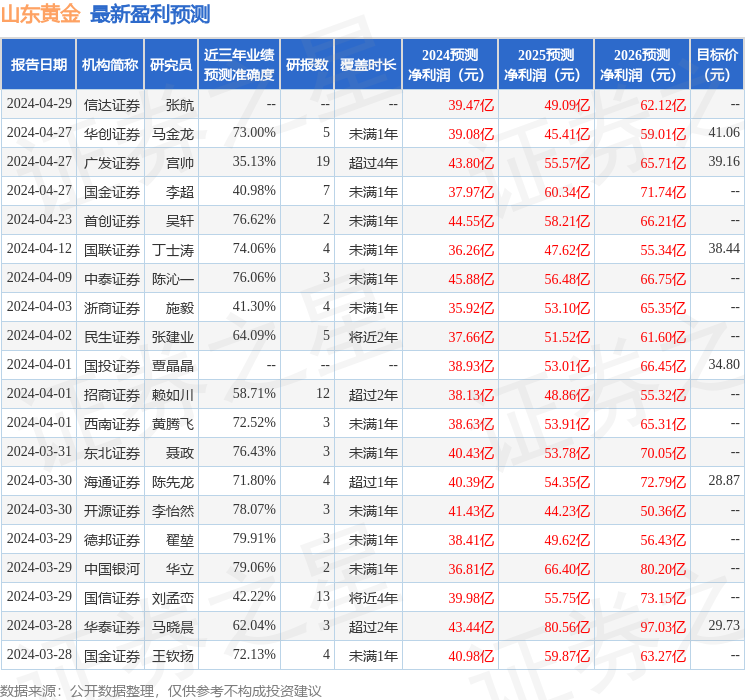 国金证券股份有限公司李超近期对山东黄金进行研究并发布了研究报告《三山岛取得采矿证,资源整合稳步推进》,本报告对山东黄金给出买入评级,当前股价为28.58元。