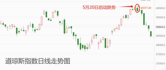 美联储褐皮书利多美元指数的同时,利空美国股票市场。隔夜美国三大股指均收跌,其中道琼斯指数的跌幅最为显著。5月20日触及阶段性高点40077.4至今,累计跌幅将近4%,且阴K线占比极高。道琼斯指数的下跌虽然有褐皮书的助推,但主要原因是权重个股的集体回调,典型的是麦当劳,年内回调幅度已经超过15%,对股票指数形成严重拖累。长周期看,美股每一次的下跌都有可能是“黄金坑”,随着股市信心的恢复,股票指数总是能够再创新高。