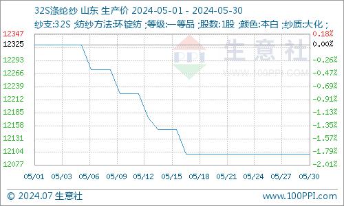 需求方面,6-8月为终端纺织行业淡季,下游纱厂产品降价促销以便回笼资金,成交按单商谈,截止2024年5月30山东地区32S纯涤纱市场参考价格在12100元/吨,较月初下跌1.83%。终端工厂采购积极性不高,织造市场淡季气氛明显,江浙地区织造行业开工在75%附近。坯布库存增加,部分常规坯布出货速度较为缓慢。同时受到外贸受海运费上涨,集装箱紧张,及欠款周期拉长等因素影响,厂家接单和下游下单心态都愈加谨慎,对需求形成了一定的拖累。