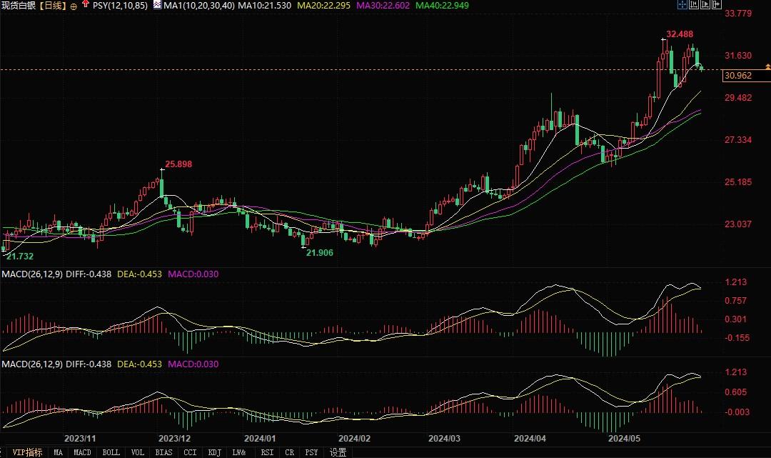目前银价跌破31美元,未来可能继续下跌,下一步测试5月24日最新周期低点30.02美元,投资者需对此保持警惕。