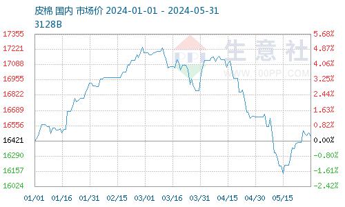 5月31日中国棉花指数3128B级均价16542元/吨,较上一交易日下跌27元/吨。