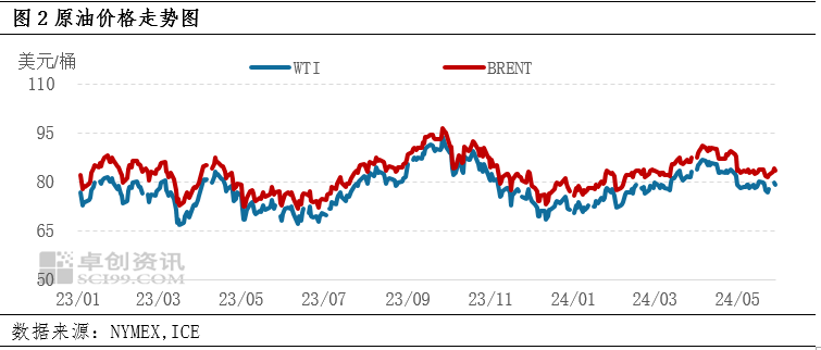 5月份原油价格变化仍然受到地缘局势的影响,由于欧洲和中东局势的不断降温,市场担忧的石油供应中断并没有发生,且多国积极斡旋,希望各方达成和解协议,地缘溢价不断回吐,而后期下跌后持稳震荡,市场预期美国石油去库提供支撑,但是汽油需求同比依然偏弱,环比增加的幅度低于市场预期,叠加美联储的货币政策降息预期一再延后,原油上涨缺乏动力,只能在区间波动。