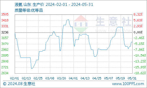 本周(5.27-31),国内液氨市场上涨,据生意社商品行情分析系统,山东地区液氨周涨幅达3.33%。主因在下游需求稳定的背景下,北方地区装置故障频繁,部分停车导致供应紧张。目前山东地区液氨主流价格在3000-3200元/吨。