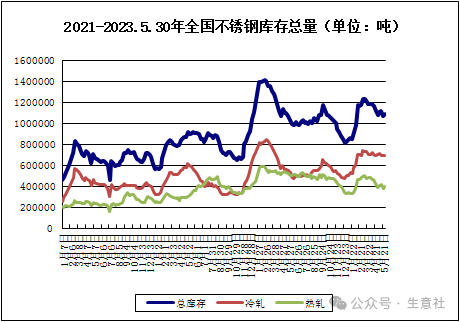 5月份至今,不锈钢市场整体震荡下跌。五一假期过后,不锈钢市场补货进度不及预期,市场库存有一定累积,随后在期货盘面逐步下滑影响下,不锈钢市场价格跟随趋弱调整。中旬及之后在普京访华和地缘冲突频起影响下,有色金属市场整体趋强为主,原料镍跟随连续上涨,带动不锈钢市场探涨意愿。月底,虽然价格的上涨带动部分终端接货,但整体仍以刚需接货为主,高位成交受阻,行情有所承压。