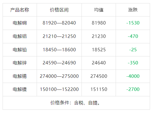 今日现货锡价跟跌期锡,月末市场基本无成交。卓创资讯1#锡锭报价274000-275000元/吨,较上一交易日下跌4000元/吨,期锡跟跌其他有色品种,现货商家多结算,成交改善不大,仅有部分下游刚需逢低采购。卓创资讯预计,下周锡价震荡下跌概率较大。