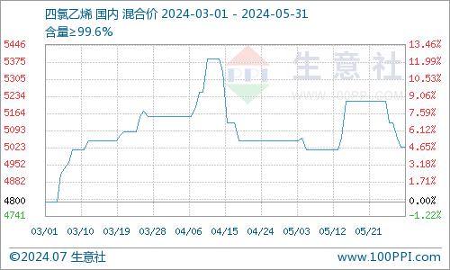 五月初,四氯乙烯价格小幅走低,据海关数据显示,4月四氯乙烯进口量是去年的约25倍之多,今年前4月四氯乙烯进口量16338.322吨,同比去年增长约119%,出口量5870.04吨,减少约8.75%,下游企业外购积极,国内市场需求减弱。企业开工高位,供应稳定,月中四氯乙烯行情小幅提涨,部分企业装置检修,市场供应减弱。月末需求端表现疲软,下游行情走弱,装置检修,采购下滑,促使四氯乙烯行情回落。
