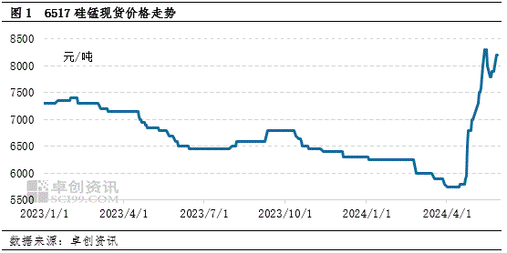 硅锰现货价格截至发稿日,北方6517硅锰在8000-8200元/吨,南方报价在8100-8300元/吨,环比涨34.26%,同比涨12.83%。部分企业表示,折合成本来看,厂家依旧面临亏损态势,前期盘面给硅锰一定信心支撑,多数厂家选择盘面操作,整体亏损相对缓和,而5月中旬随着盘面下滑,硅锰现货价格也随之下滑。后期若硅锰下游需求持续回升,成本高位以及期货高位盘整下,硅锰价格或有继续拉涨可能。