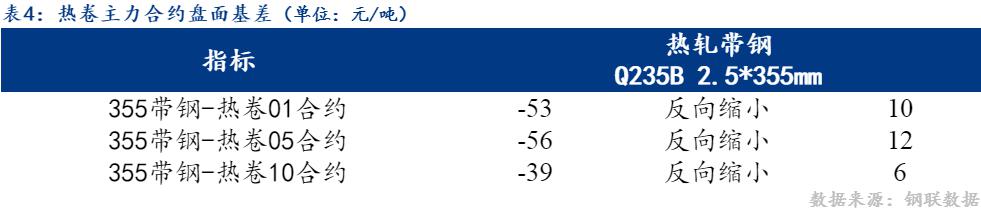 31日市场热卷10合约与355带钢价差反向缩小6元/吨,热卷05合约与355带钢价差反向缩小12元/吨。