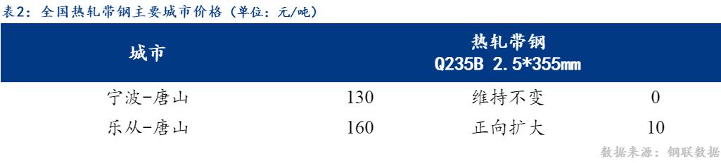 355mm带钢与钢坯市场价格价差正向扩大6元/吨,螺带差反向缩小6元/吨。
