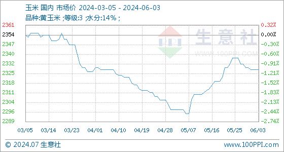 6月3日,生意社玉米基准价为2328.57元/吨,与本月初持平。