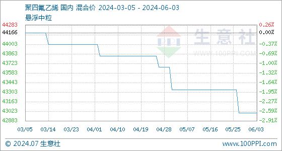6月3日生意社聚四氟乙烯基准价为43000.00元/吨