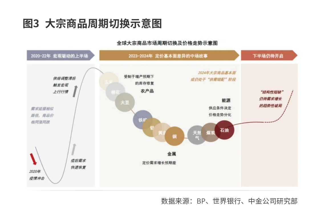 中金公司认为,随着全球制造业周期重启、产业链重新布局、地缘政治冲突和全球再工业化步伐的加快,在新的宏观范式下,叠加超级周期上半场,美国等海外市场的需求有韧性而供给不足进而导致通胀中枢维持较高位,很可能是跨周期的结构性现象。金融属性较明显的铜、油等大宗商品的价格中枢在通胀中枢维持高位的大背景下或在很长一段时间维持高位。