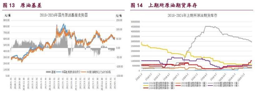 截至 2024 年 5 月 21 日,WTI 原油非商业净多持仓量平均维持在219300张,周环比大幅增加 16257 张,较 4 月均值 283759 张大幅下降64459 张,降幅达22.72%。与此同时,截至 2024 年 5 月 21 日,Brent 原油期货净多持仓量维持在 136629 张,周环比大幅减少 66608 张,较 4 月均值307955 张大幅下降171326张,降幅达 55.63%。总体来看,WTI 原油期货市场净多头寸月环比大幅下降,而 Brent 原油期货市场的净多头寸月环比也大幅下降。