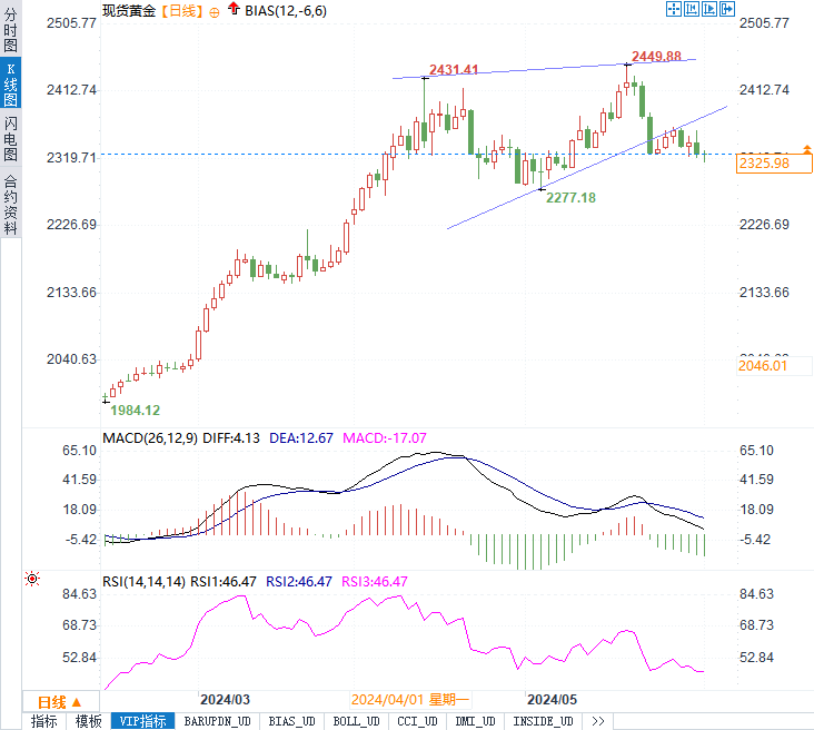 基本面上,美国通胀报告显示,4月份个人消费支出(PCE)价格指数上涨0.3%,同比持平于2.7%,符合预期。这一数据强化了市场对美联储今年降息的预期,对美元构成压力,同时为黄金价格提供支撑。