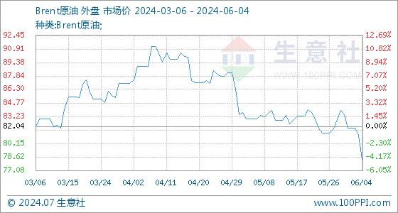 6月4日生意社Brent原油基准价为81.11美元/桶