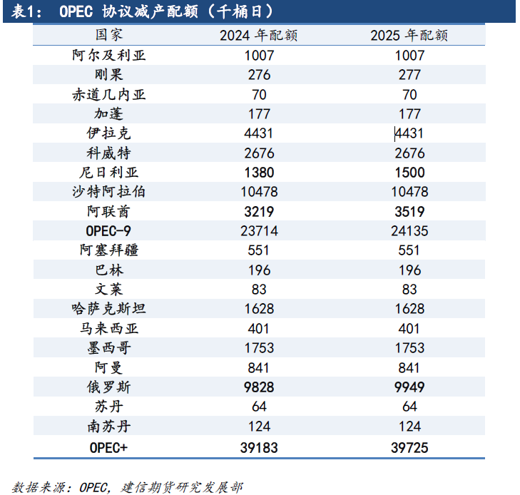 1.2025年OPEC+将延续协议减产,并确定了各国配额。