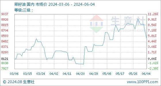 6月4日生意社菜籽油基准价为8683.33元/吨