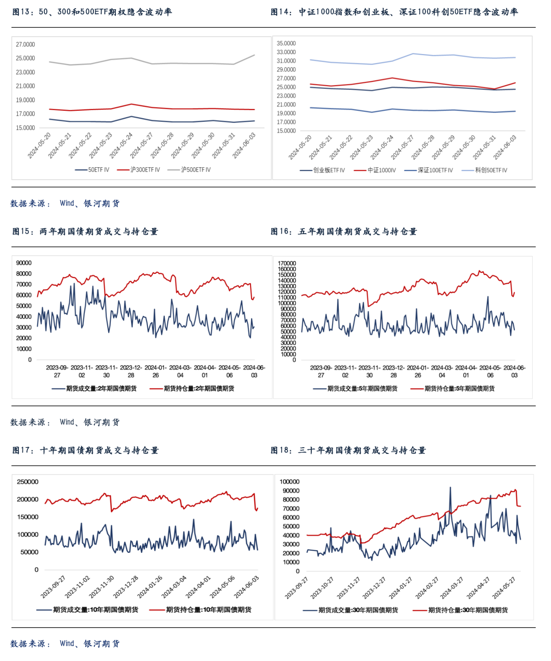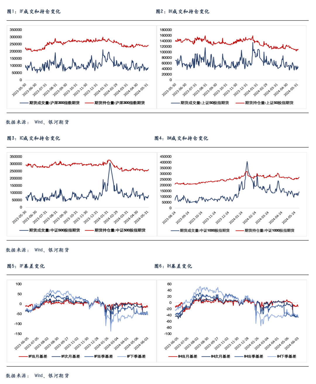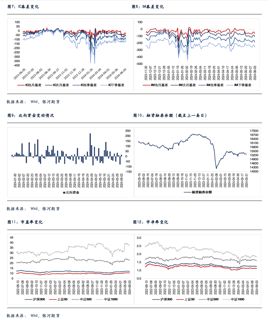股指期货表现继续分化,至收盘,主力成交合约IH2406涨0.03%,IF2406跌0.04%,IC2406跌0.98%,IM2406跌1.83%。期货表现弱于现货,各品种基差扩大。震荡加大,成交提升,IC、IF、IH和IM成交分别增加28.9%、19%、18.7%和30.7%。IC、IF、IH和IM持仓分别增加3.3%、2.7%、3%和6.1%。