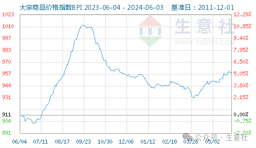 6月3日大宗商品价格指数BPI为957点,较昨日下降了228.74%45.00%