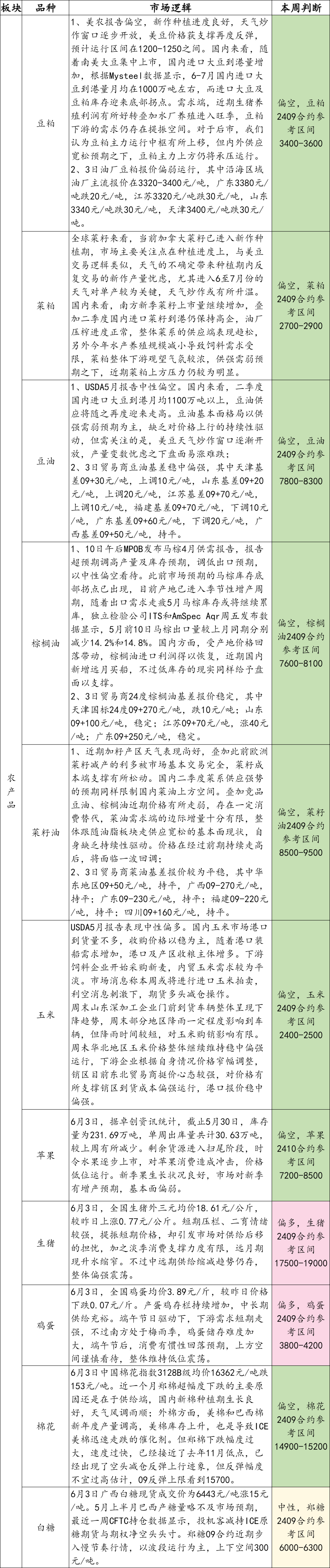 【农产品】行情提示及操作建议2024/6/4
