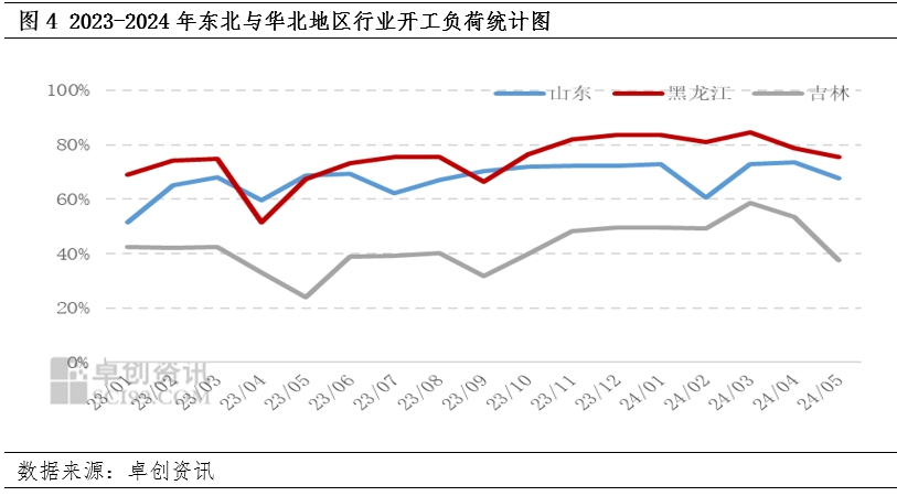 三、因东北与华北行业加工利润的差异,行业开工负荷走势出现不同。