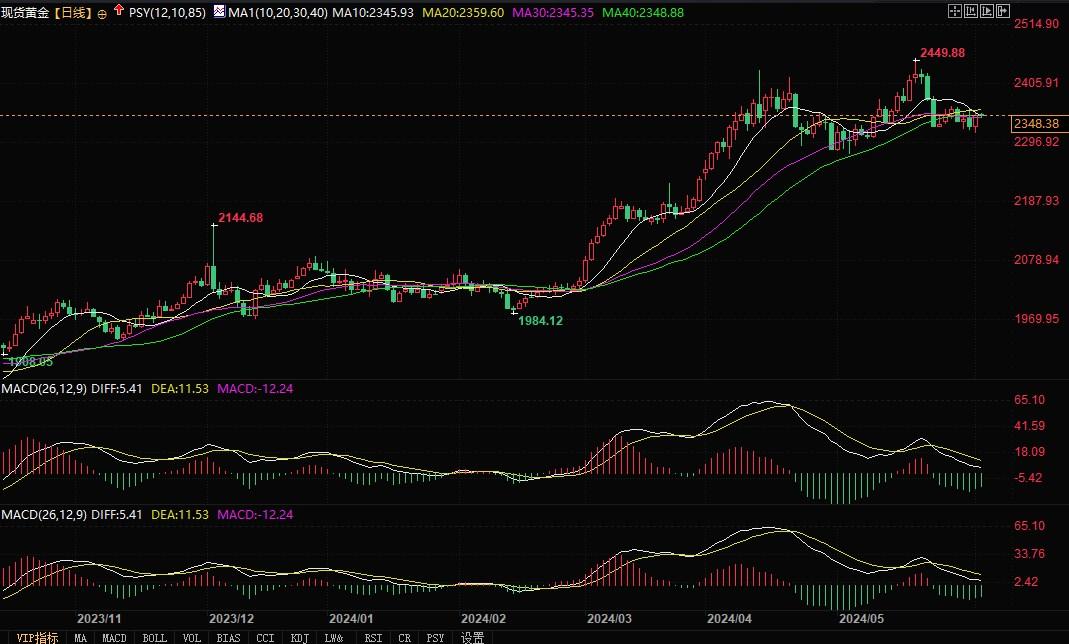 北京时间6月4日13:37,现货黄金报2347.95美元/盎司