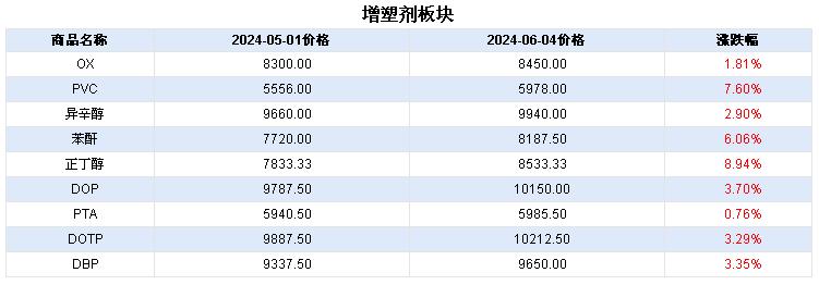 5月增塑剂板块小幅持续上涨