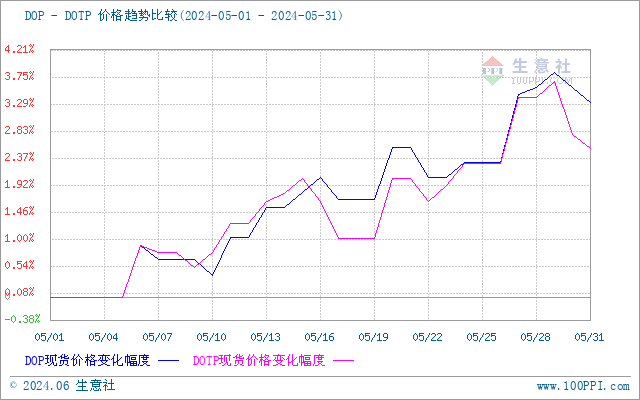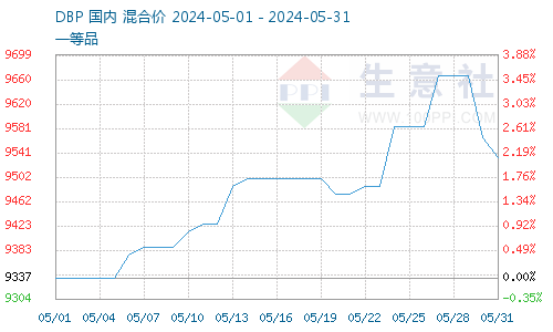 据生意社商品行情分析系统,5月增塑剂产品涨幅收窄。截止5月31日,DOP价格10112.50元/吨,较5月1日价格9787.50元/吨上涨,涨幅3.32%;5月31日DOTP价格10137.50元/吨,较5月1日价格9887.50元/吨上涨2.53%;5月31日DBP价格9533.33元/吨,较5月1日DBP价格9337.50元/吨上涨2.10%。增塑剂企业开工率高位运行,供应充足。成本支撑,增塑剂产品价格持续上涨,宏观政策刺激,增塑剂需求回暖,5月增塑剂价格上涨支撑较大。