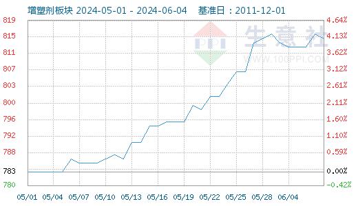 据生意社商品行情分析系统,6月3日增塑剂板块为816点,较上一交易日上升了3点,较5月1日增塑剂板块指数783点上升了33点,涨幅4.21%。5月增塑剂板块指数小幅上涨,且增塑剂板块指数持续上涨。
